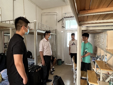 9月9日下午,公司党委书记谭运阳,副书记朱迅成,班主任张媛媛、邓珊珊、陈飚,团委书记秦凤微、团委副书记周剑等老师与班助们走访新生宿舍,对新同学们的到来表示欢迎与祝贺,同时向同学们强调了校园安全问题,叮嘱他们调整心理状态、树立个人目标、远离各类网络游戏、实现主动学习,并耐心解答了他们的疑惑与问题。
