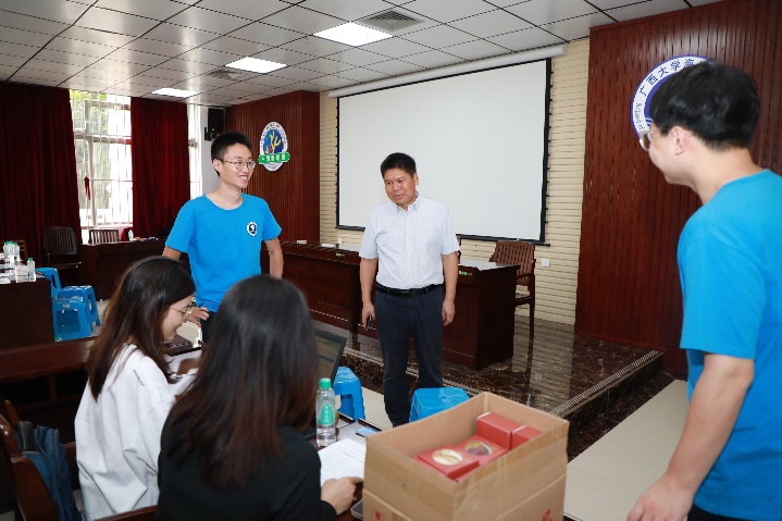 党委书记谭运阳、经理余克服到报到点了解报到工作情况