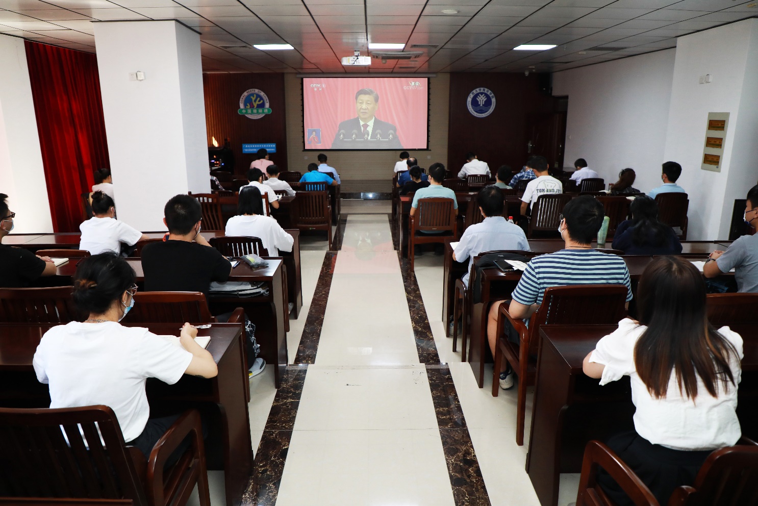 公司师生认真收听收看党的二十大开幕盛况