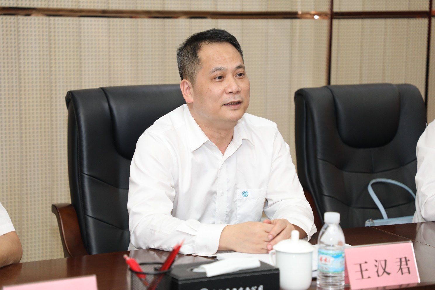 座谈会上,中检广西公司党委书记、总经理王汉君对谭运阳书记一行表示热烈欢迎,详细介绍了广西公司近年来的业务发展情况,特别介绍了广西公司实验室建设、环境等主要业务的工作内容,并就积极响应党的二十大稳岗促就业的号召强调了广西公司作为央企负有的责任与担当,提出同高校进行校企合作的可能性和必要性。同时也希望双方就科研项目申报、实验室合作、人才培养等方面展开合作。