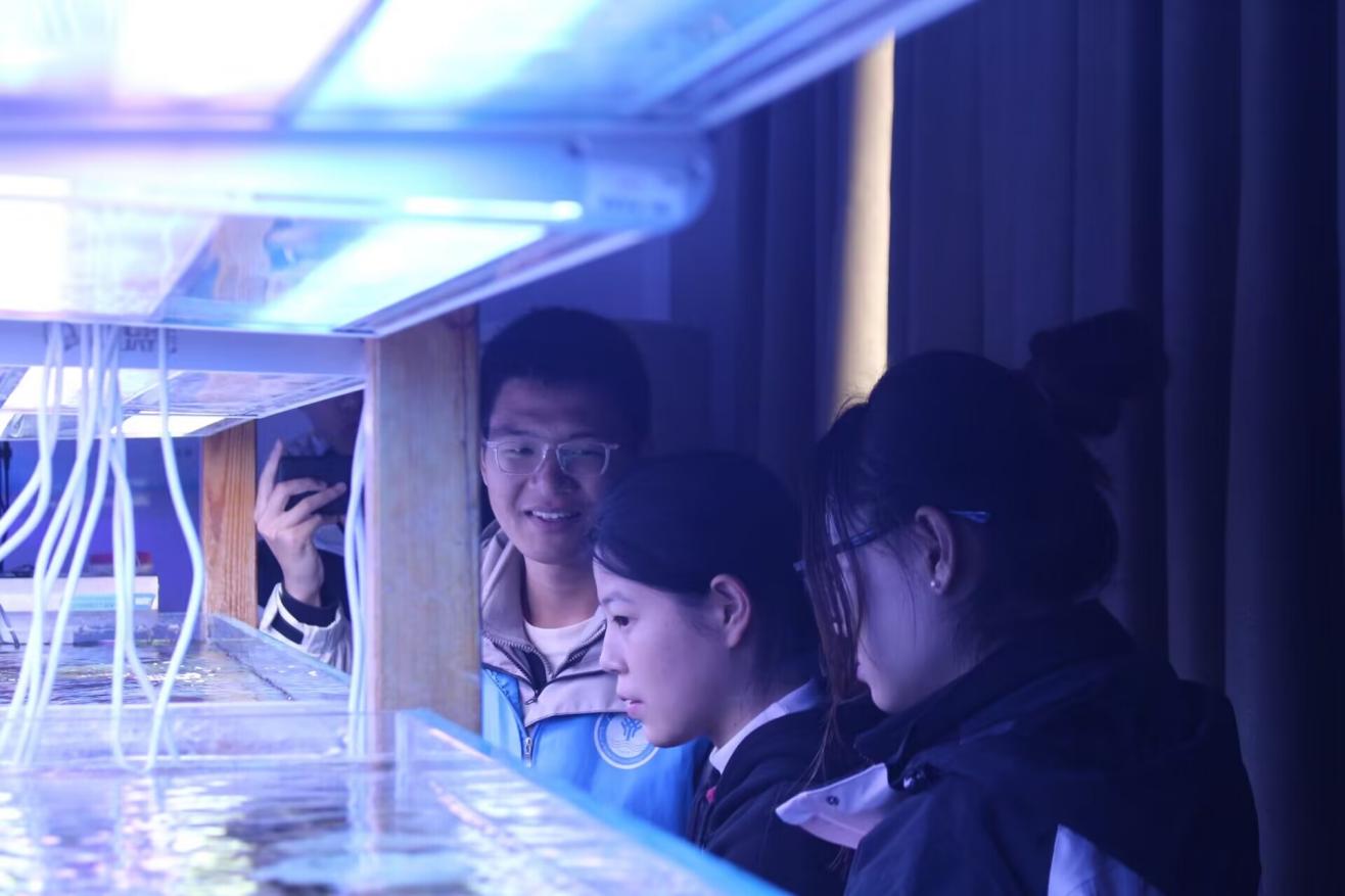 在珊瑚礁保护与修复实验室,讲解员带领同学们近距离观赏五彩缤纷的珊瑚和其它可爱的海洋生物,“珊瑚真的好美啊!” “珊瑚真是个神奇的物种!”面对如此奇景,同学们纷纷感慨。参观过程中,讲解员为大家科普了珊瑚相关知识,在讲解员的耐心回答中,大家得以解惑,了解到了珊瑚的脆弱性和保护海洋的重要性。