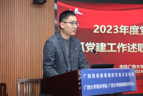 3月7日,海洋公司党委在综合楼1104会议室召开2023年度党支部书记抓党建述职评议工作大会,公司党委领导班子成员、各党支部书记、部分师生代表等参加会议。会议由公司党委书记秦华东主持。