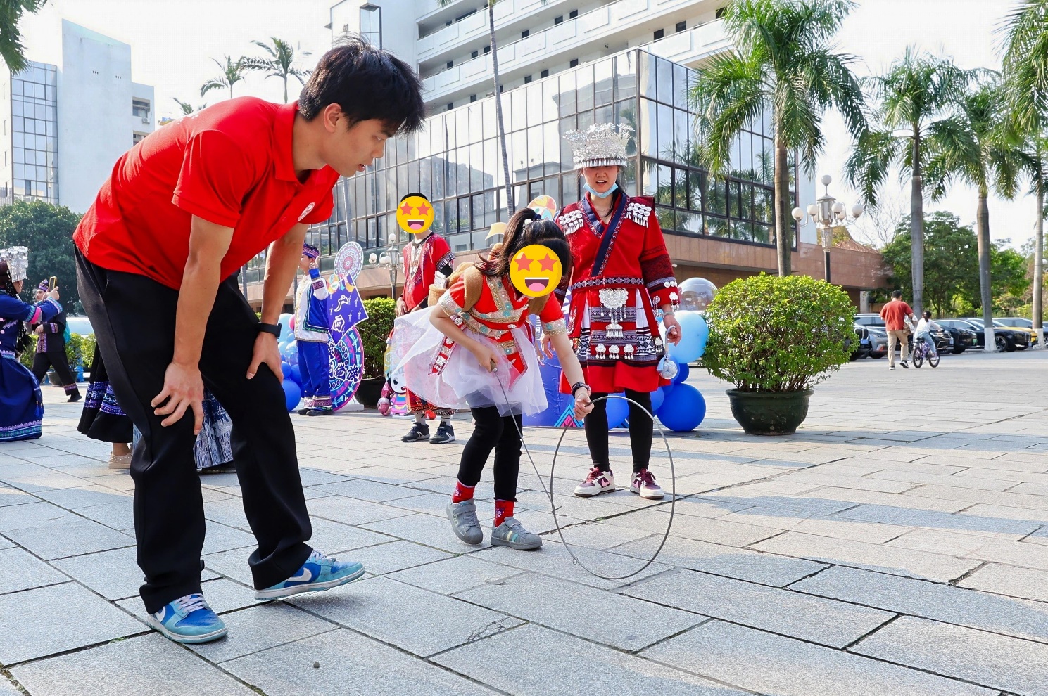 恰逢壮族传统节日“三月三”,研学活动特别融入了民族文化元素。本次活动邀请到体育公司“接力棒”志愿服务组织为孩子们精心设置了“三月三”民族运动体验,孩子们在志愿者的引导下参与滚铁环、打陀螺、高杆绣球等民族游戏,现场欢乐轻松的氛围为孩子们创造了低压力社交环境。