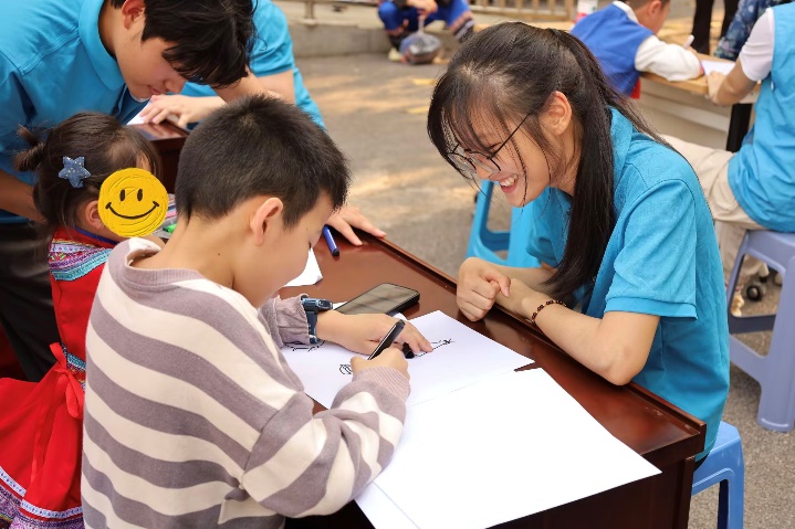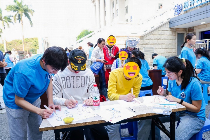 在海洋科教馆旁,公司设置了“海洋知识科普小课堂”、“海洋生物简笔画小游戏”互动专区。志愿者们结合专业所学,用生动易懂的语言为孩子们讲解珊瑚生态与习性;简笔画环节中,孩子们在志愿者的指导下用彩笔描绘海豚、水母和海龟等海洋生物,稚嫩的笔触下跃动着对海洋的奇妙想象,活动现场欢声不断。