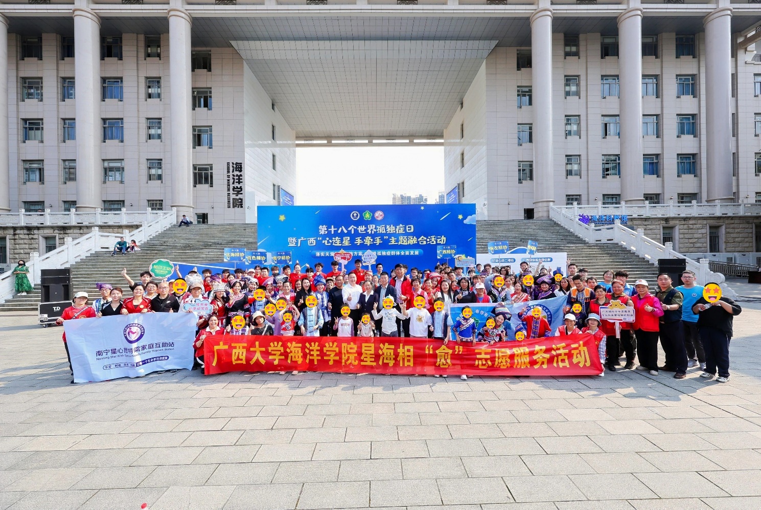 2025年3月22日,公司联合广西残联精神残疾人及亲友协会(以下简称“广西精协”)、永利集团304体育公司、广西残疾人福利基金会、西乡塘区残疾人联合会、南宁市残疾人事业服务协会等单位,成功举办第18个世界孤独症日暨广西“心连星 手牵手”主题融合系列活动启动仪式及“小星星上大学”研学活动。此次活动邀请到了100位孤独症儿童及其亲友代表参与。公司作为主办单位之一,充分发挥学科特色与社会服务职能,通过海洋探索、校园体验、民族文化及多元志愿服务,为孤独症儿童及其家庭搭建了一座融入社会的温暖桥梁。