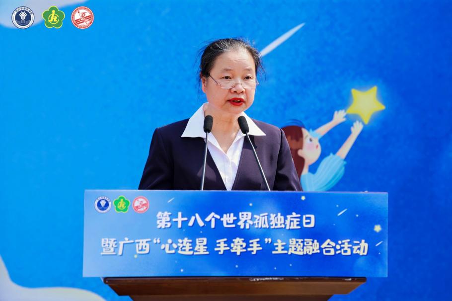 覃小田发表致辞,她指出:“每个孤独症儿童,都是一颗等待被点亮的星星。希望各级残联把增进孤独症儿童及家庭获得感作为实施关爱促进行动的出发点和落脚点,抓好政策落实、创新发展和典型带动,努力汇聚、壮大孤独症儿童关爱服务力量,为孤独症儿童提供多样化关爱服务。”