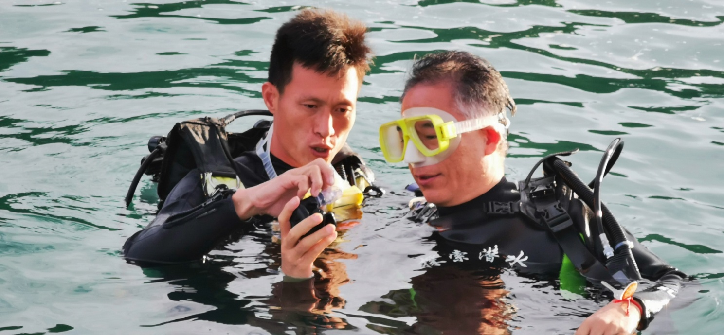 实验室潜水培训中心主任黄学勇老师介绍水下考察珊瑚礁苗圃和生态修复的路线