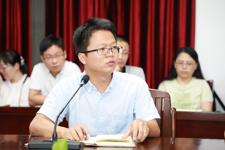 党委副书记朱迅成首先通报了2022届毕业生的毕业去向落实率和深造率,以此对本科生、硕士研究生的培养和教育与老师们进行了交流,提出了相应的举措;同时希望老师们要切实发挥导师制作用,关注员工学业。朱迅成副书记还提醒全体教师要知敬畏、讲规矩、守底线,严格遵守疫情防控规定,严禁违规收送礼品礼金、严禁酒驾醉驾,严格家教家风,坚持清正廉洁。最后他还通过多个案例提醒老师们注意防范网络诈骗,规范安装使用国家反诈中心APP。