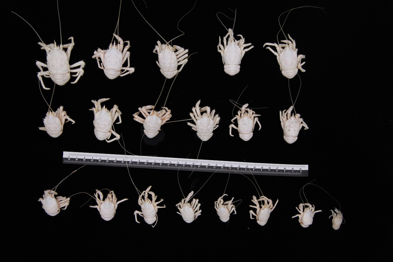 FDZ121潜次所采集的铠甲虾样本(永利集团304 陈飚/采集、海洋二所 李启航/拍摄)
