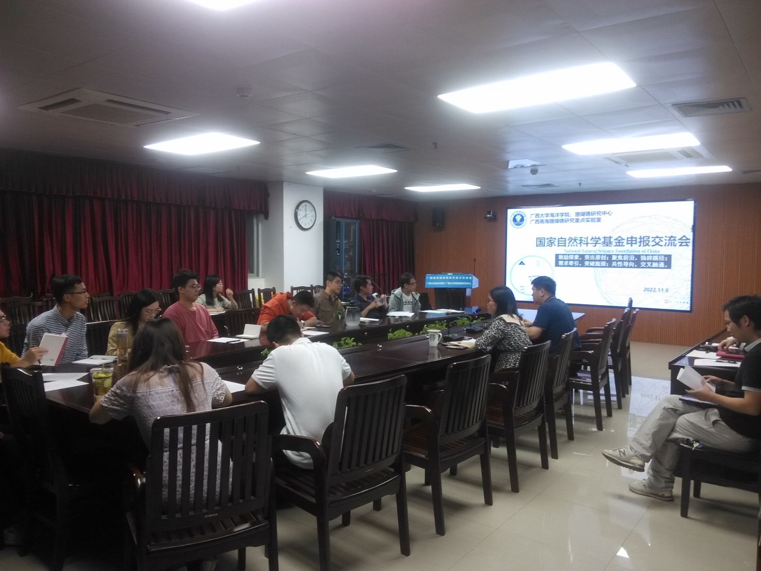 11月6日晚,公司组织了2023年国家自然科学基金申报交流会。会议由韦芬老师组织,经理余克服教授参加了交流会。邓珊珊、裴继影、雍阳阳、覃祯俊、左秀玲、林武辉等6位老师分享了基金申报方面的想法和经历。