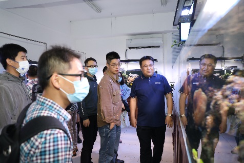 红树林研究中心王欣副研究员接待了公司师生一行,并带领参观、讲解了红树林 - 海草床 - 珊瑚礁综合生境模拟实验室、滨海生态系统生物标本室、微缩滨海湿地、人工模拟雷电雨系统等。师生一行还考察了红树林中心的海洋科学文献典藏馆、海洋生物科普长廊等,了解了红树林研究中心在虾塘红树林生态农场、海草床及珊瑚礁保护与修复工程等方面的科技创新成果,并对海洋学科前沿领域与技术研发开展热烈讨论。双方表示,未来将继续立足广西生态文明建设和生态保护与修复工作,以海洋需求为导向,共同携手加快实施项目、攻坚克难、打造区域创新发展新高地。