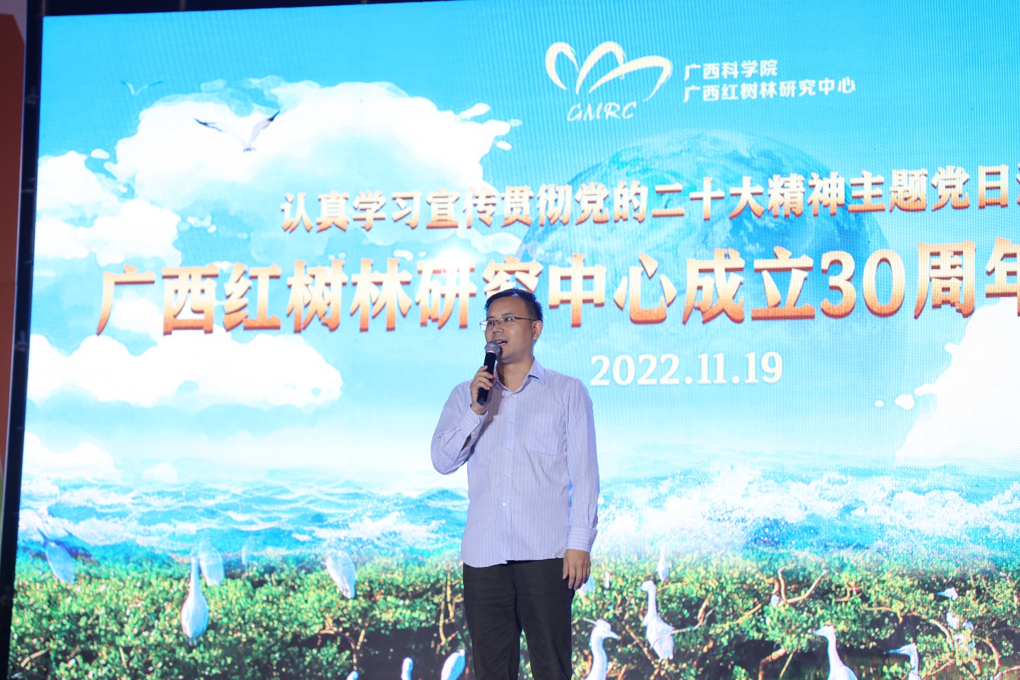 永利集团304官网行政办主任李周佳老师放歌广西红树林研究中心30周年庆典仪式