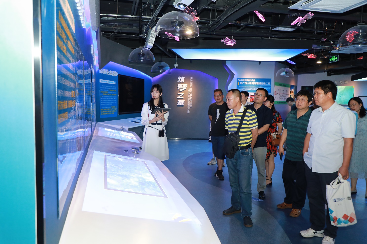讲座结束,范航清研究员在自治区海洋局预警监测处蒋明星处长、公司经理余克服教授陪同下参观永利集团304海洋科教馆,办公室主任李周佳、广西南海珊瑚礁研究重点实验室科研助理王浠源讲解介绍。(周剑、雍阳阳/文、图 周剑、黄荣永/编辑 余克服/审核)
