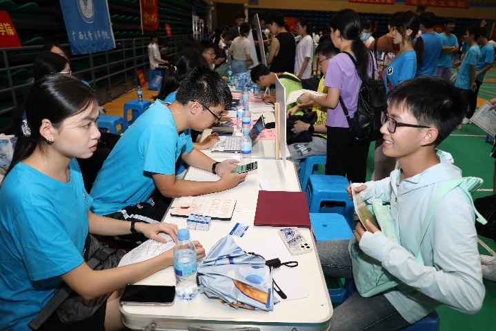 9月9日上午迎新系统刚开放,新生们陆续迈进公司,在一对一接待服务的志愿者以及班助的协助下完成材料验证、办理校园卡等报到手续。公司党委书记秦华东、党委副书记朱迅成到场指导迎新工作、与新生家长等进行交谈,并亲切慰问新生和迎新工作师生及志愿者。团委学工、研究生办公室和行政办等相关负责老师也到场协助迎新工作的开展。