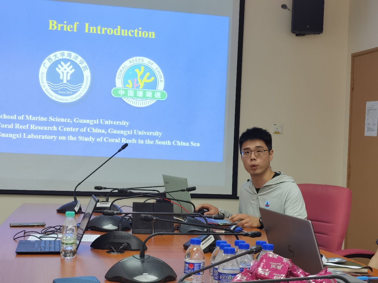 Maisara Abdul Kadir副经理对公司交流团一行表示热烈欢迎,认为此次交流对于双方进一步开展合作具有重要意义。之后,Nurulnadia Mohd Yusoff博士介绍了马来西亚登嘉楼大学海洋科学研究和人才培养领域所取得的成绩。随后,Muhammad Hafiz Borhanuddin教授分享了海洋生物团队在珊瑚适应性研究方面的成果,介绍了在Bidong岛开展珊瑚礁科普、保护和修复的相关成果和未来计划。最后,陈飚博士介绍了交流考察的主要目的,并详细汇报了永利集团304官网的发展历程、珊瑚礁系统科学建设、研究平台、代表性科研成果、海洋科学人才培养等内容。