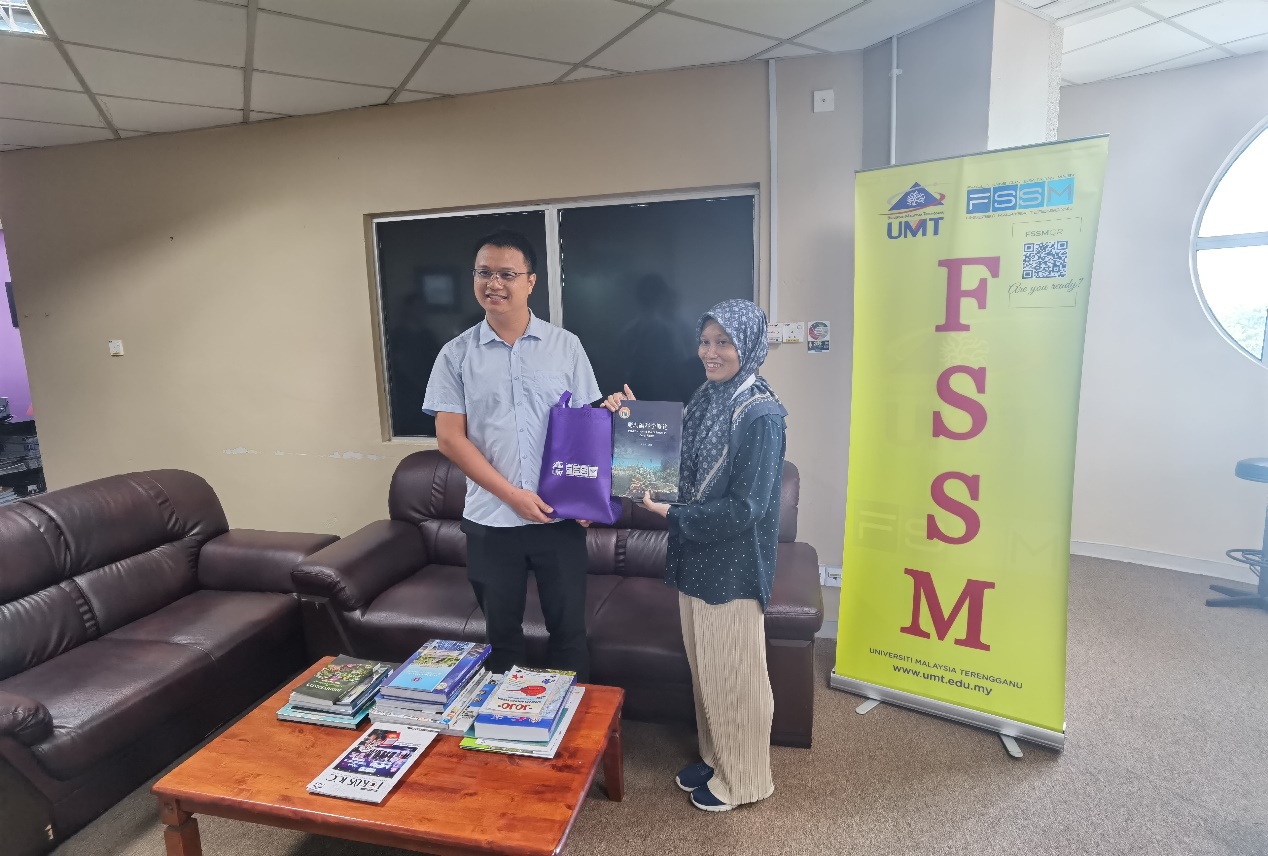 黄雯副教授(左)与Nurulnadia Mohd Yusoff博士(右)分别代表两校互赠礼物纪念品