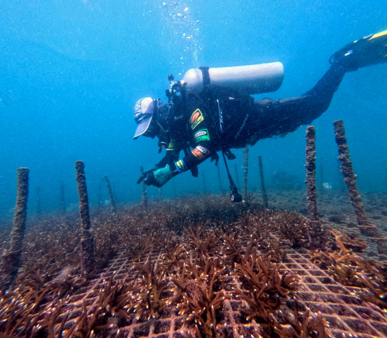 黄雯潜水监测种植的珊瑚生长情况