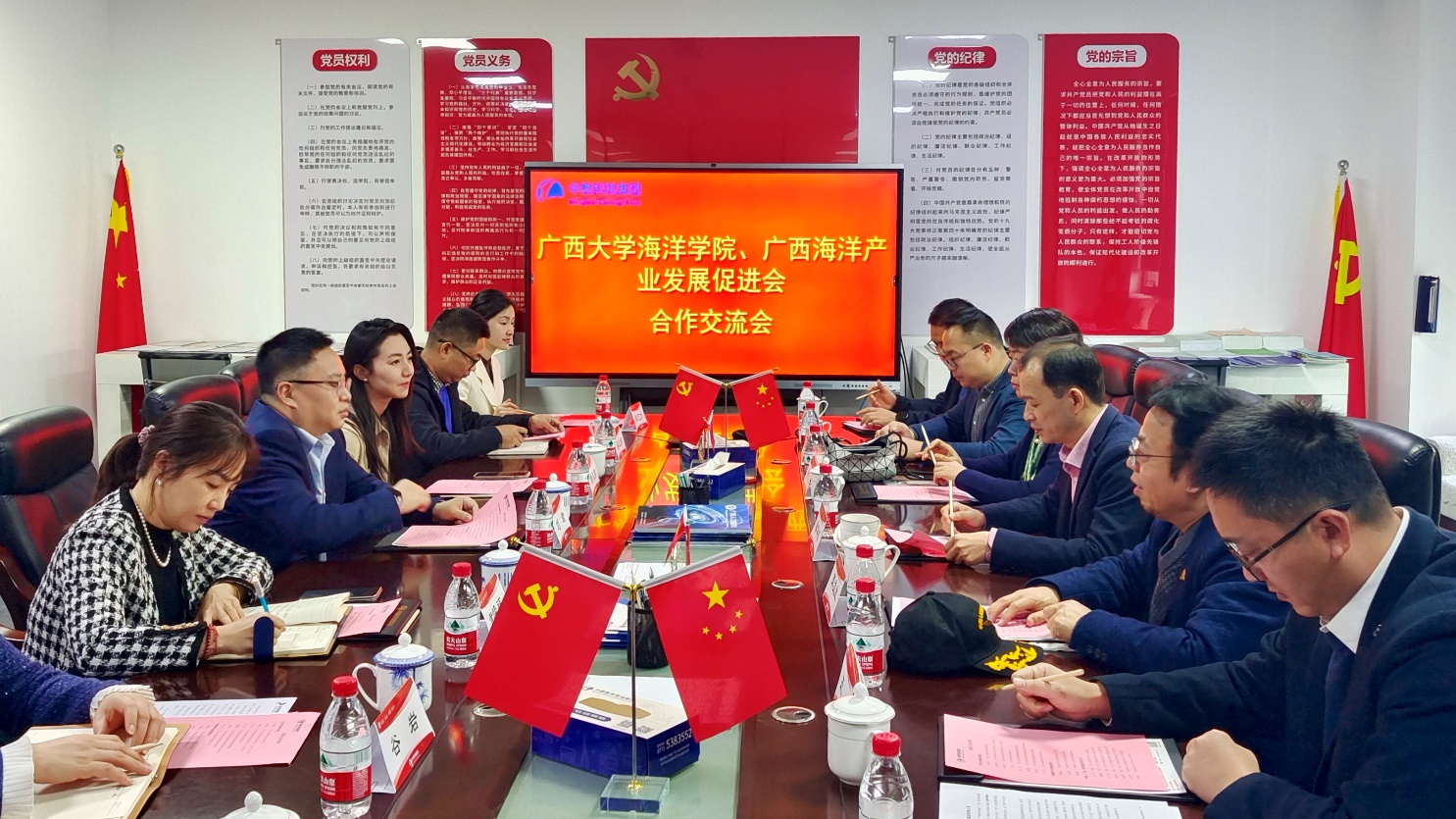 1月21日,公司党委书记秦华东一行赴中教(广西)科技集团有限公司调研交流。广西海洋产业发展促进会执行会长覃孟生、秘书长刘日勇、副秘书长徐华深,院学术带头人徐向荣、党委副书记黄学勇、副经理王瑞陪同调研。