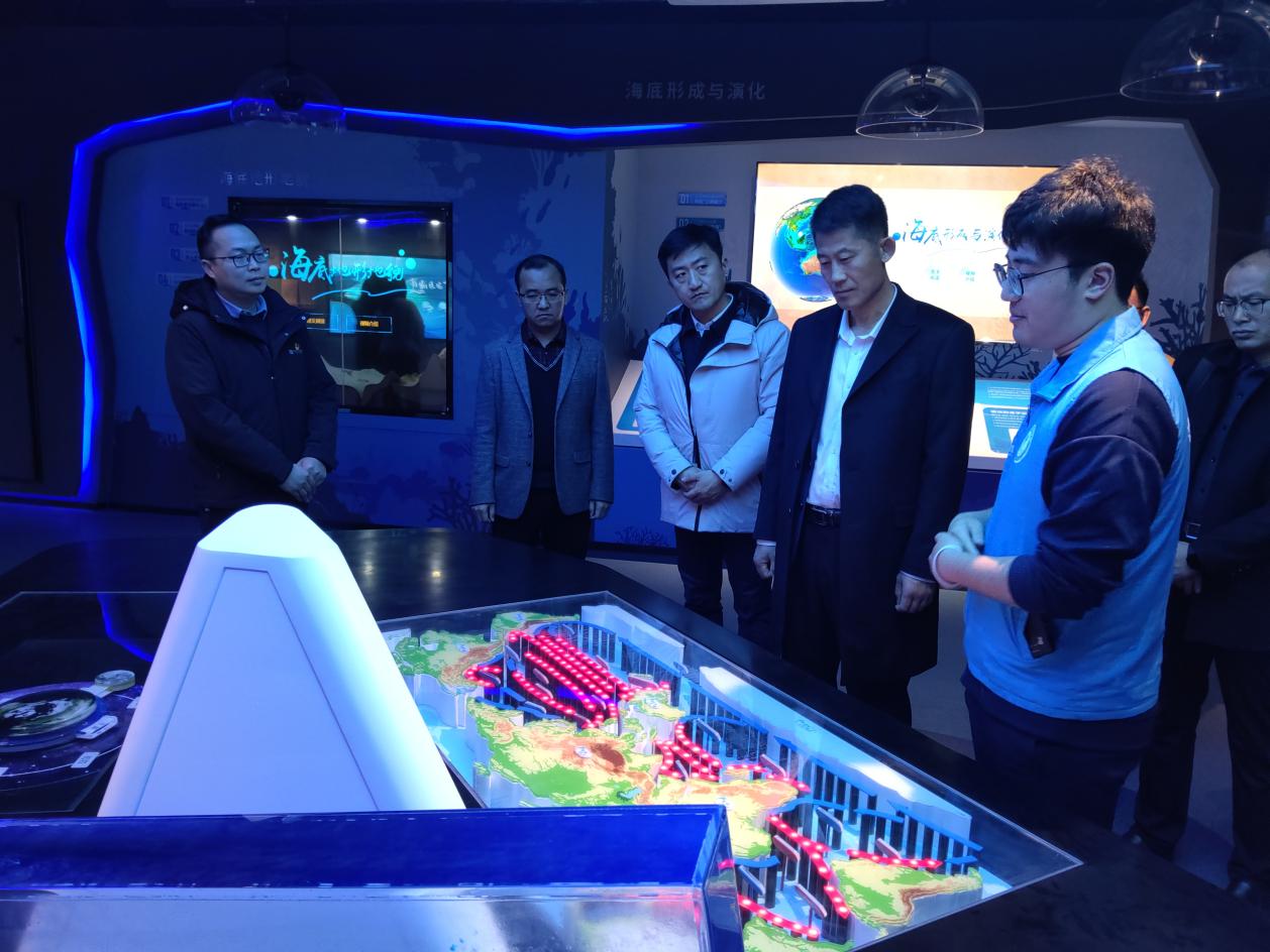 调研组参观了永利集团304海洋科教馆。永利集团304官网蓝色梦想科普队成员、本科生于尚科为调研组深入介绍了科教馆的内容。从海洋的形成、大陆的变迁,到洋流系统对全球生态环境的影响,生动地展现了海洋科学的魅力。在珊瑚礁相关展示区,他详细介绍了珊瑚礁生态系统在生态、经济、旅游及科研等方面的重要价值,以及公司在涠洲岛建立的珊瑚礁生态修复试验基地,构建了2000平方米修复示范区域,使修复区内活珊瑚覆盖度从5%提升至20%并登上中央电视台等官方媒体的报道。使调研组对公司在海洋科研领域的实力有了更深入认识。