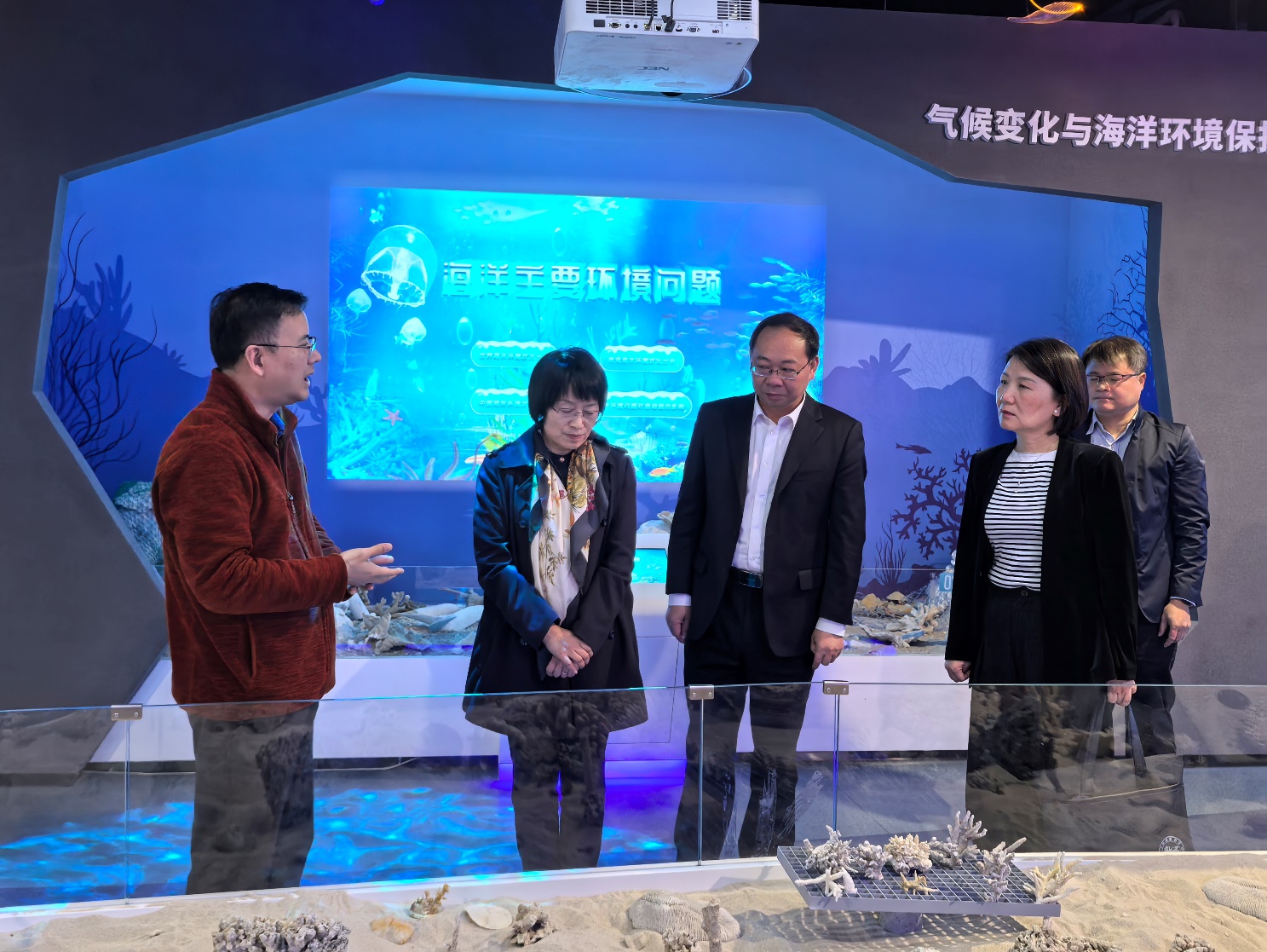 在海洋科教馆,科教馆常务副馆长李周佳向调研组汇报了公司在南海岛礁建设、海洋科考、生态环境保护等方面开展的工作情况。尤其是参与编写《黄岩岛海域生态环境调查评估报告》,充分展示了我国南海海洋生态环境保护成效,为服务国家政治外交大局提供了支撑保障。在岛礁生态修复实验室,调研组观看了活体珊瑚的人工培育,观看了涠洲岛陆基和海区可视化监控系统运行状况,了解了公司成立珊瑚礁保护与修复研究团队,研发以“人工修复带动自然恢复”为理念的珊瑚礁生态修复技术,建立了2000平方米的自然海域珊瑚修复示范区,经过3年的努力实现了活珊瑚覆盖率从5%提高到20%,带动了周边海域珊瑚礁的自然恢复。赵浩对永利集团304官网聚焦珊瑚礁研究所取得的成效给予了高度评价,她建议两校进一步加强在科技成果转化、学科交叉融合等方面的合作。