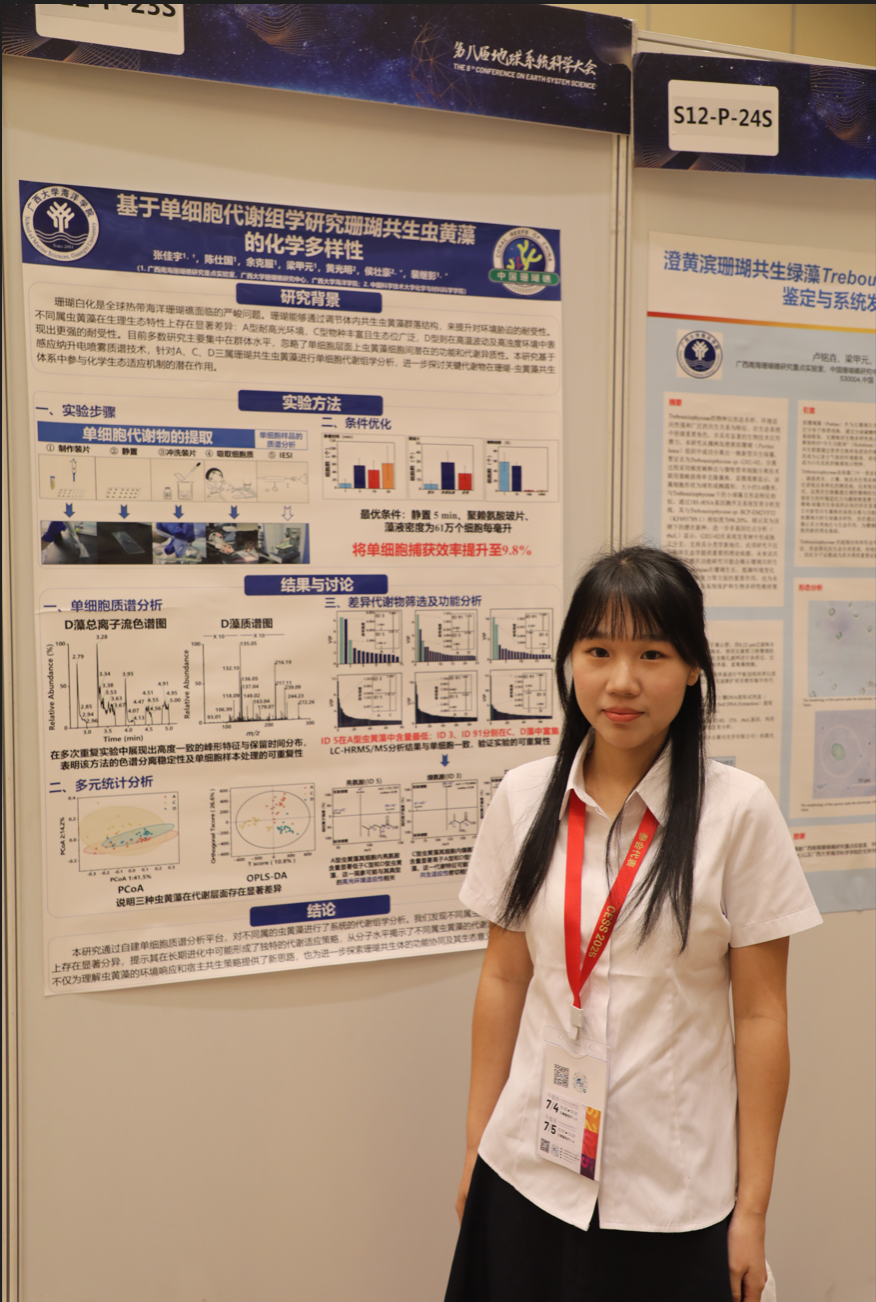 2025年7月2日至5日在上海举行的第八届地球系统科学大会中,公司2022级“海洋科学”专业本科员工张佳宇的展板报告“基于单细胞代谢组学研究珊瑚共生虫黄藻的化学多样性”,入选大会“南海珊瑚礁:多尺度演化过程与环境适应性”专题,并荣获“优秀员工展板”奖。大会闭幕式上,我国地球科学领域的著名科学家周忠和院士、正堂院士、金之钧院士、知湣院士和朱伟林教授为张佳宇等颁发“优秀员工展板”证书。