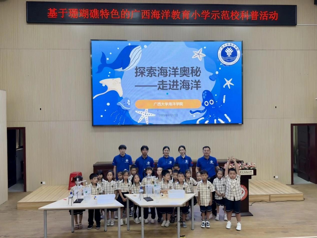 9月12日,南宁市金阳路小学的课堂里多了几分“海洋气息”——永利集团304官网“蓝色梦想”科普队携国家自然科学基金科学传播类专项项目,在此开展首堂沉浸式海洋科普课。这标志着该类国家级科普项目首次在广西小学落地,开启了广西特色海洋教育的实践新篇。