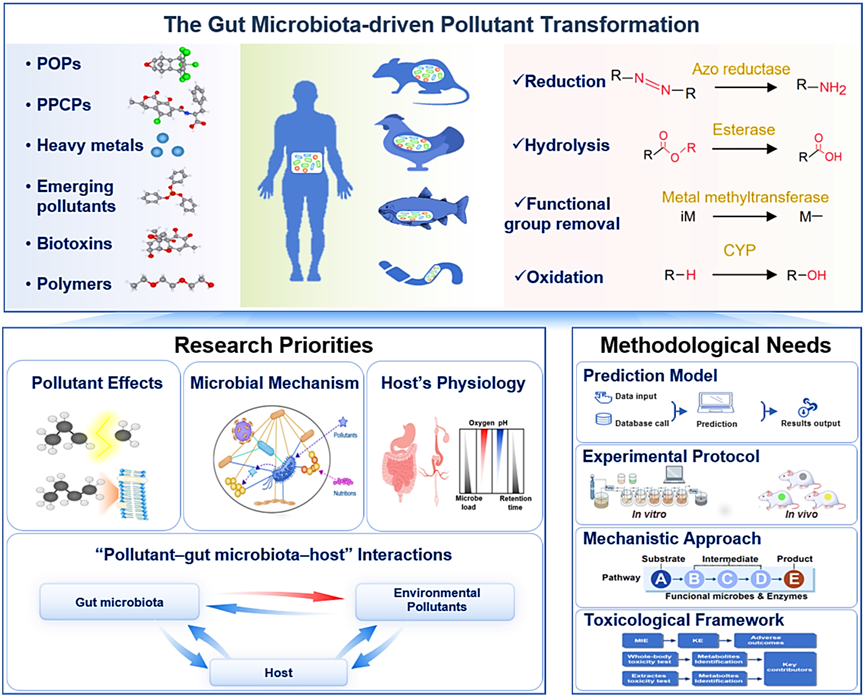 近日,公司携手广东工业大学、中国环境监测总站,在国际微生物生态学领域顶级期刊The ISME Journal(中国科公司一区Top)联合发表评论性综述论文 “Deciphering the Universal Role of Gut Microbiota in Pollutant Transformation(解读肠道微生物在污染物转化中的普遍作用)”。该综述开创性地以“同一个星球,同一个健康(One Planet, One Health)”为研究视角,对涵盖无脊椎动物至人类的13个类群生物的肠道微生物群对490多种环境污染物的转化能力。所涉及的污染物类型广泛,包括持久性有机污染物、重金属、药品和个人护理品、工业添加剂等。此外,论文还明确揭示了肠道微生物群在污染物转化过程中的普遍作用机制,深入探讨了该转化过程对污染物生物利用度、毒性水平及环境归趋的影响。在此基础上,研究团队进一步提出“污染物—肠道微生物群—宿主”相互作用的系统化研究方向,并倡导将肠道微生物的转化能力纳入跨学科研究范式,为相关领域研究提供全新思路。