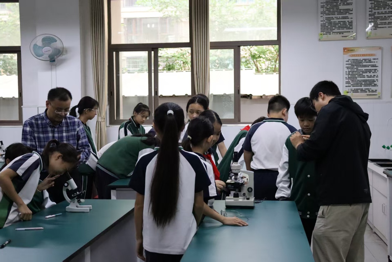 实操环节中,同学们分组围坐显微镜前观察珊瑚玻片样本。在巩三强老师、李周佳老师的指导下,大家调节焦距,玻片在镜头下呈现出纹理和细胞形态。“原来珊瑚在显微镜下是这样的!像一层层精致的鳞片”同学们分享观察发现。观察结束后,同学们根据显微镜下的观察绘制珊瑚微观结构图,用笔勾勒珊瑚纹理,标注观察到的微观特征。