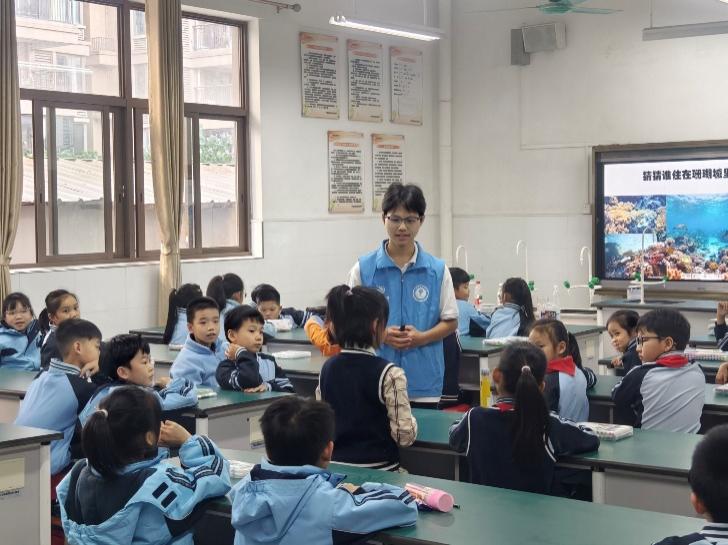 11月27日,永利集团304官网“蓝色梦想”科普队携国家自然科学基金科学传播类专项项目,再次走进南宁市金阳路小学,成功举办第六场海洋科普课。本次课程以“科学家精神传递与海洋奥秘探索”为主题,创新采用“双讲堂”并行模式,融信念传递、知识讲解与互动实践于一体,为师生带来一场沉浸式的海洋科普体验,进一步激发青少年的家园情怀与海洋保护意识。