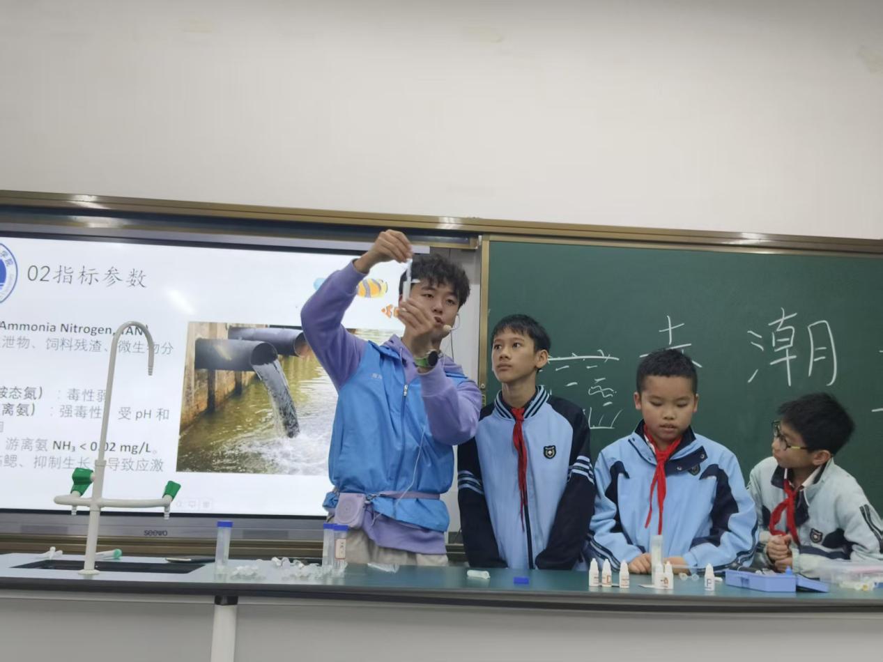 12月16日,南宁市金阳路小学迎来了一堂别开生面的海洋科普课。永利集团304官网“蓝色梦想”科普团队携国家自然科学基金科学传播类专项项目,为六年级员工带来了以“海水水质监测实验”为主题的第七场科普活动。通过系统讲解与亲手实践,同学们在生动的课堂中深入理解了水质监测的科学意义与现实价值。